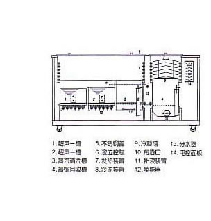 一級超聲波粗清洗,二級超聲波精清洗,蒸氣浴洗,冷凍干燥,蒸鎦回收。適用于電子零件,電子,電腦線路,精密機械零件,表殼,表帶,電鍍前等除松香,助焊劑,油污,拋光蠟的清洗。